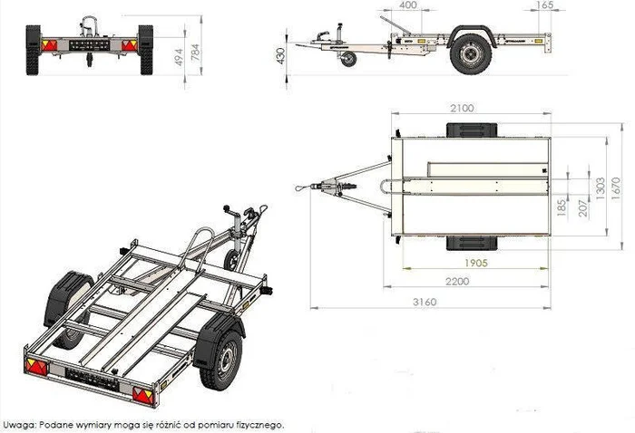 Remorque moto 1 rail,remorque d’une longueur maximale de 2 mètres avec un timon rabattable. Avec des pièces provenant des meilleurs fabricants tels que AL-KO, KNOTT. La remorque est envoyée à votre domicile avec tous les documents nécessaires.