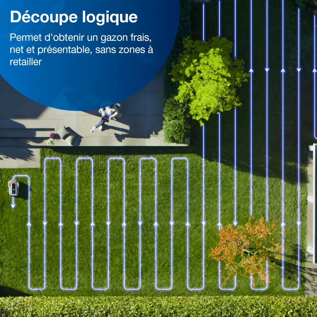 - Technologie de marquage de pelouse qui permet d’obtenir des motifs de tonte variés et personnalisés