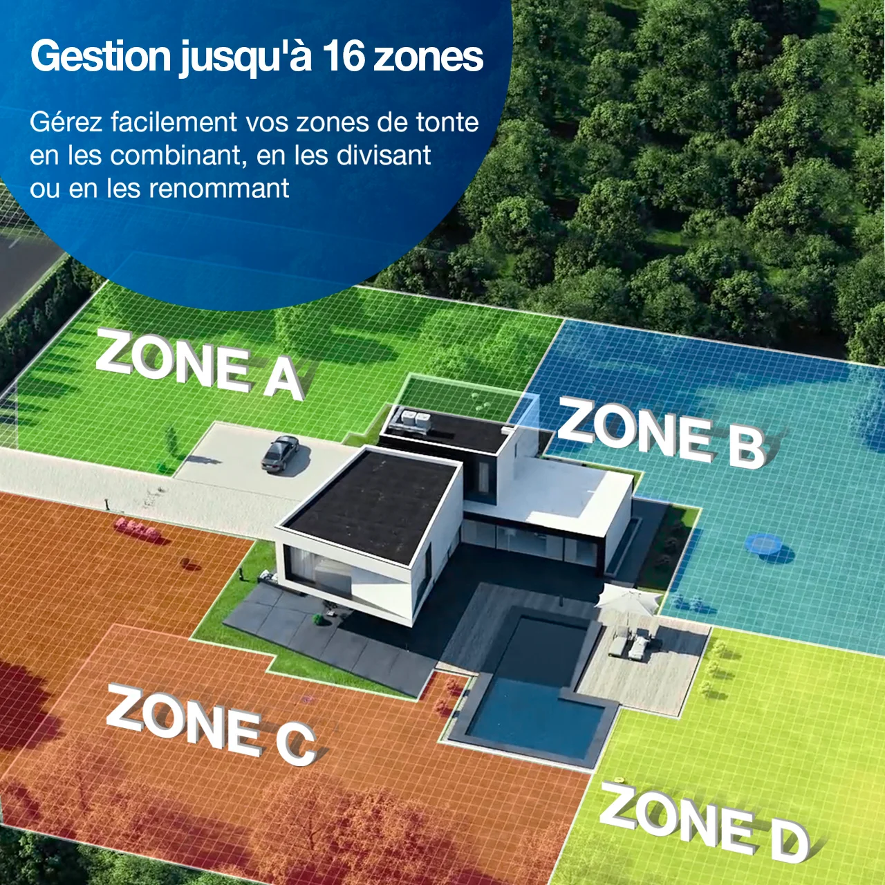 - Gestion multi-zones et zones interdites pour pelouses complexes